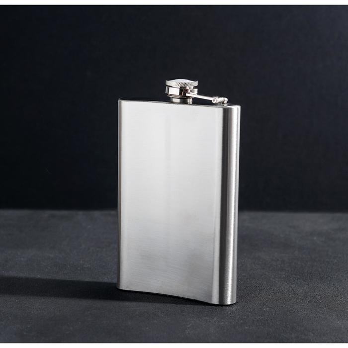 Фляжка, 330 мл "Герб России", в коричневом чехле, 8 х 4 х 18.5 см, хром