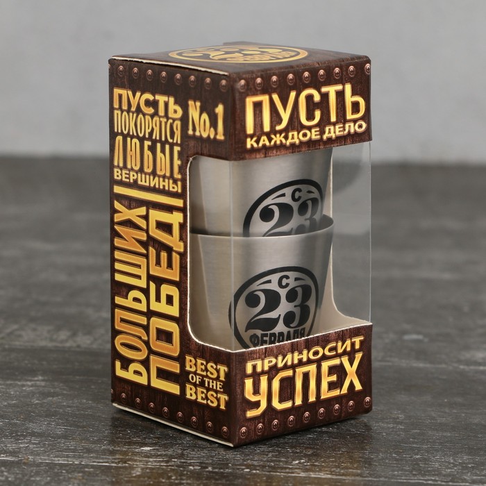 Стопки, 23 Февраля, "Побед на всех фронтах", набор 3 шт х 30 мл, 4 х 3.5 см