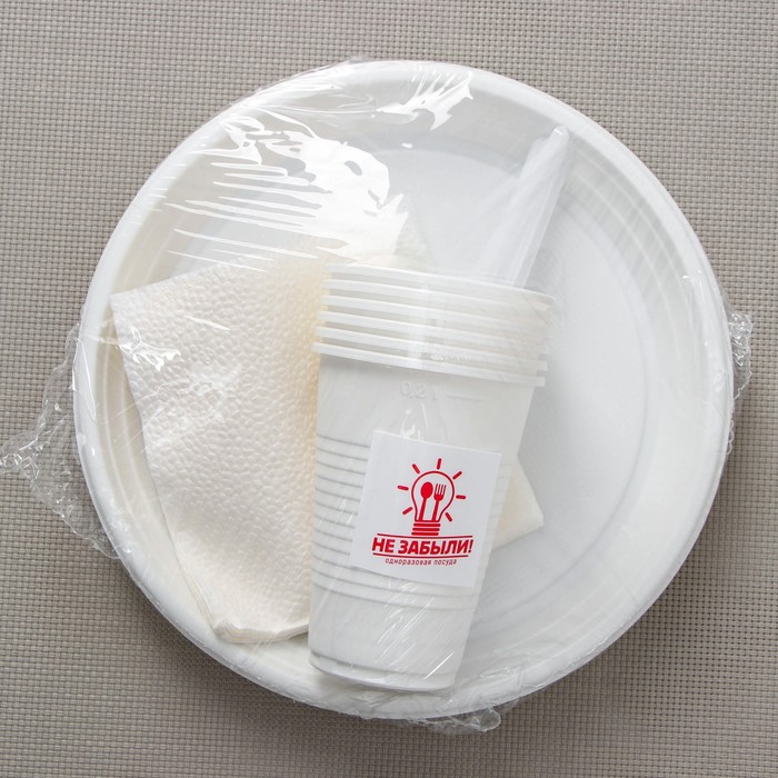 Набор одноразовой посуды на 6 персон Не ЗАБЫЛИ! «Пикник», тарелки d=20,5 см, стаканы 200 мл, вилки, цвет белый
