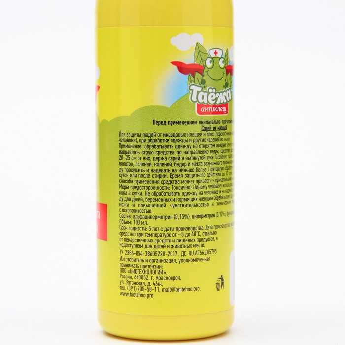 Спрей "Таёжа" от иксодовых клещей, альфацмперметрин 0,23%, для обратки одежды, 100 мл