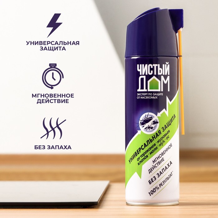 Аэрозоль Супер от насекомых "Чистый дом", универсальный, без запаха, 400 мл