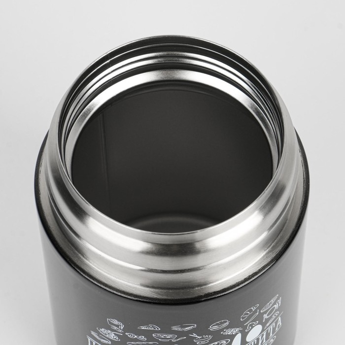 - Термос выполнен из нержавеющей стали, которая не вступает в реакцию с продуктами и не меняет их состав, запах или вкус.
