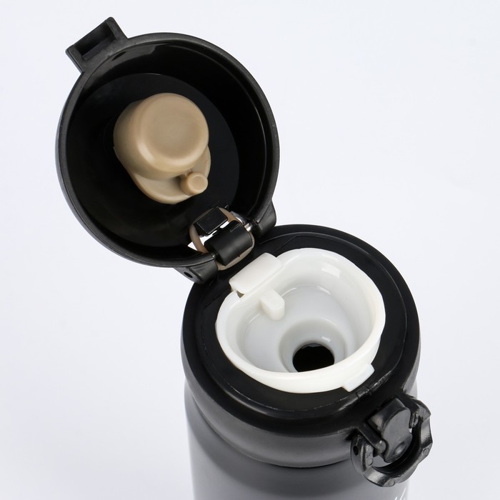 Термос (термокружка) сделан из нержавеющей стали 18/8, сконструирован по вакуумной технологии, с двойной стенкой, следовательно, долго держит тепло и не проливается. Снабжен откидывающейся крышкой, изготовленной из экологичного пищевого пластика, имеется кнопка, позволяющая с легкостью использовать термос одной рукой.