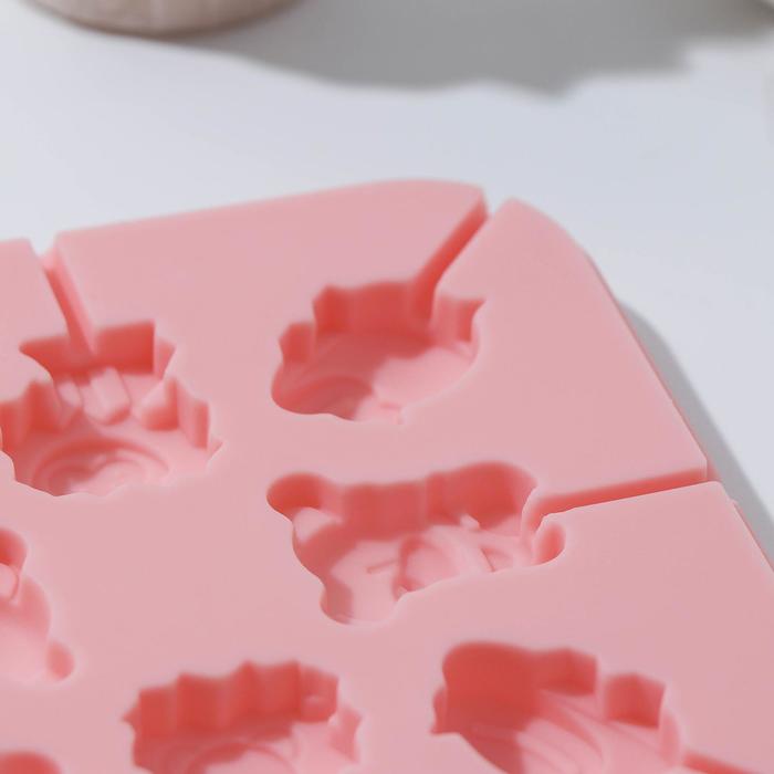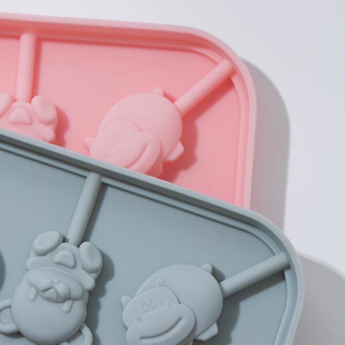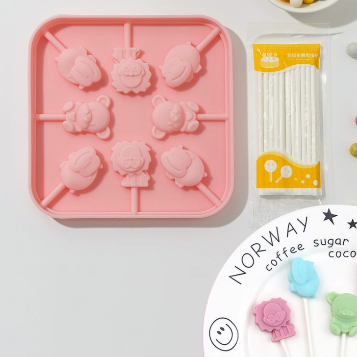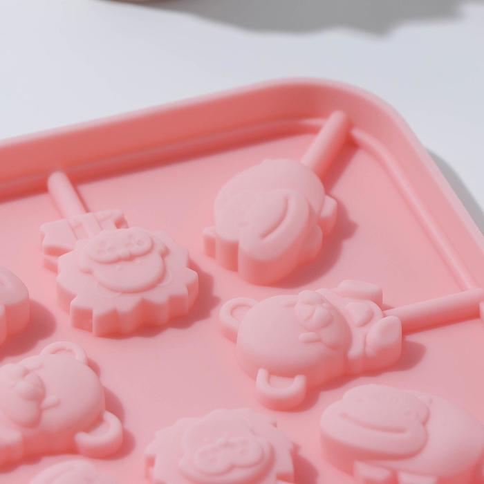 Форма силиконовая для леденцов «Зоопарк», 14,5×14,5×1,5 см, 8 ячеек (3×2,5 см), с палочками, цвет МИКС