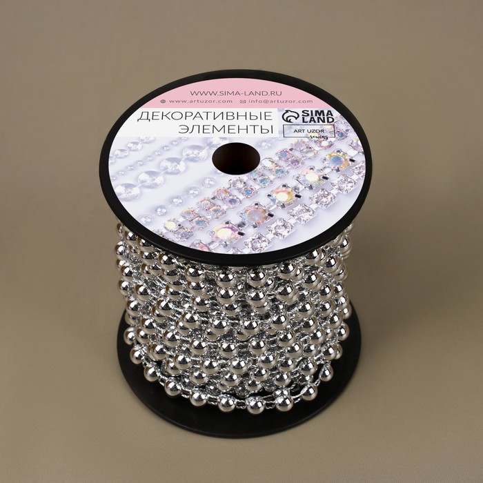 Лента с имитацией выпуклых страз, 11,5 см, 9 ± 1 м, цвет серебряный