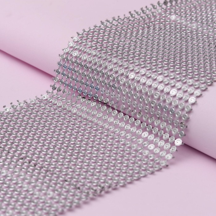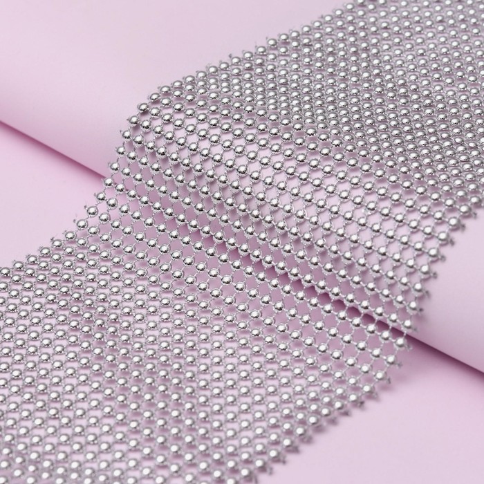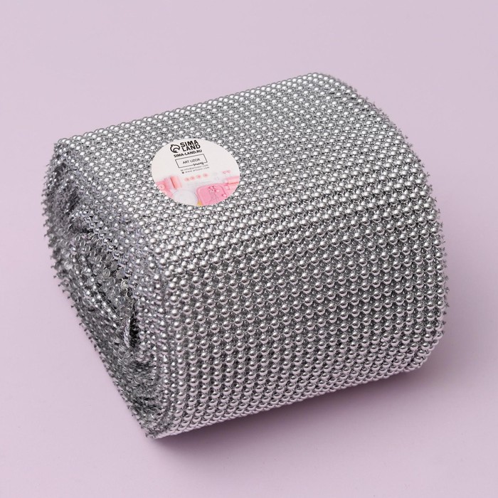 Лента с имитацией выпуклых страз, 11,5 см, 9 ± 1 м, цвет серебряный за 660.00 ₽ Купить оптом и в розницу на tijorat.com | Быстрая доставка | скидки