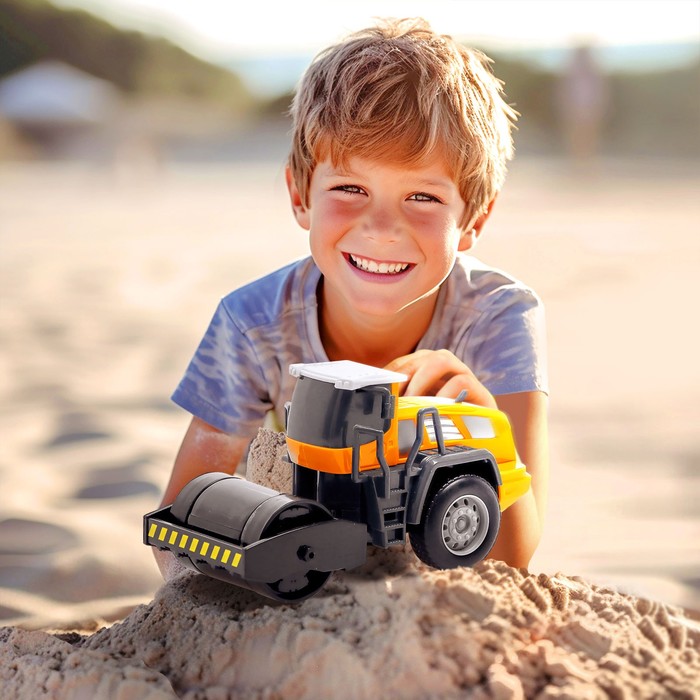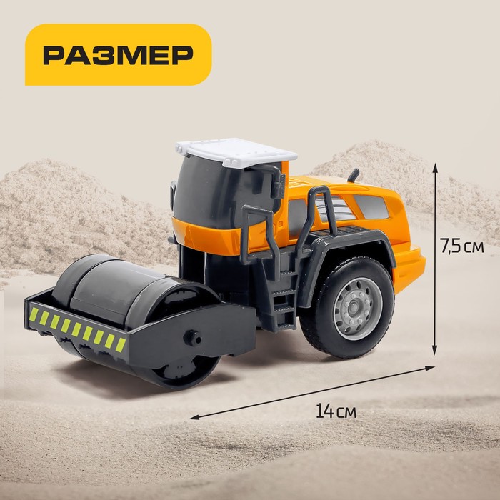 Каток «Стройтехника» порадует юного строителя своими функциональными возможностями. У техники есть подвижный вибровалец — специальное устройство для уплотнения грунта или асфальта. С такой машиной ребёнок организует строительную площадку и возведёт новое здание.