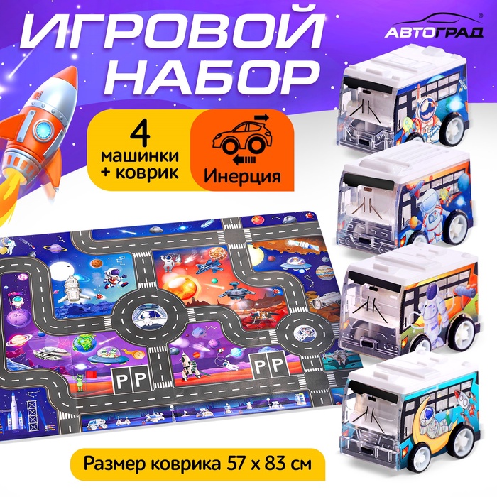Набор инерционных машин «Город», 8 машинок, коврик и дорожные знаки