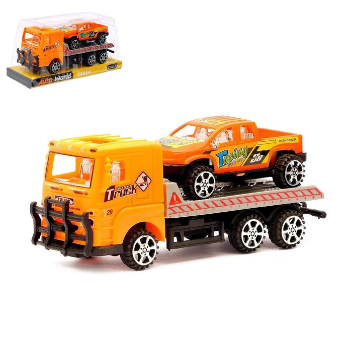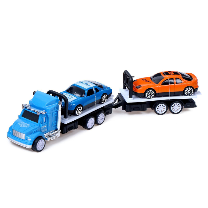 Грузовик инерционный «Автовоз», 2 машинки и 2 паровоза, цвета МИКС