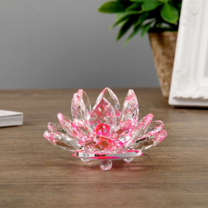 Сувенир стекло "Розовый лотос на подставке" вращается 5,5х9х9 см