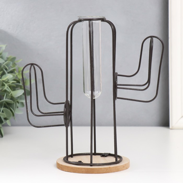 Декор металл, стекло, дерево "Кактус" на подставке чёрный 20х12х22,5 см