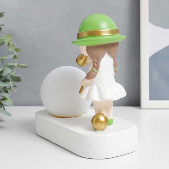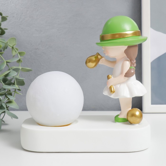 Сувенир полистоун свет "Малышка в зелёной шляпке, с золотым пузырём у шара" 16,5х8х16 см