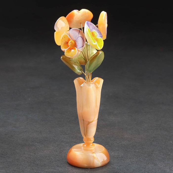 Сувенир Ваза "Росток" с фиалками ,5 цветков, селенит