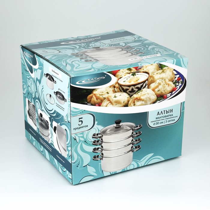 Мантоварка «Алтын», d=30 см, 3 секции, с теплораспределительным слоем, стеклянная крышка, индукция