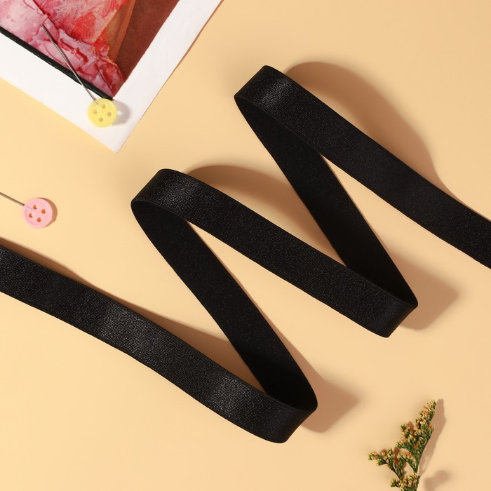 Резинка для бретелей, блестящая, 15 мм, 10 ± 0,5 м, цвет чёрный за 300.00 ₽ Купить оптом и в розницу на tijorat.com | Быстрая доставка | скидки