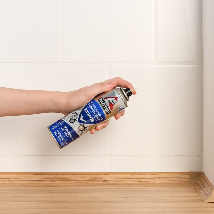 После распыления аэрозоля против клопов образуют капли, которые, попадая на насекомых, приводят к быстрому проникновению инсектицида в тело через хитиновый покров, убивая клопов за очень короткое время. Часть капель остается на обработанных аэрозолем РАПТОР поверхностях, по которым перемещаются клопы. Тем самым обеспечивается длительная защита помещения, поскольку насекомые контактируя с обработанной аэрозолем поверхностью становится носителями отравляющего вещества и через некоторое время погибают.