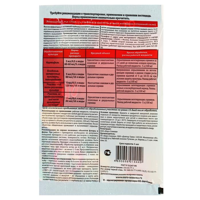 Средство сплошного уничтожения сорняков "Доктор Грин", "Ликвидатор", 5 мл