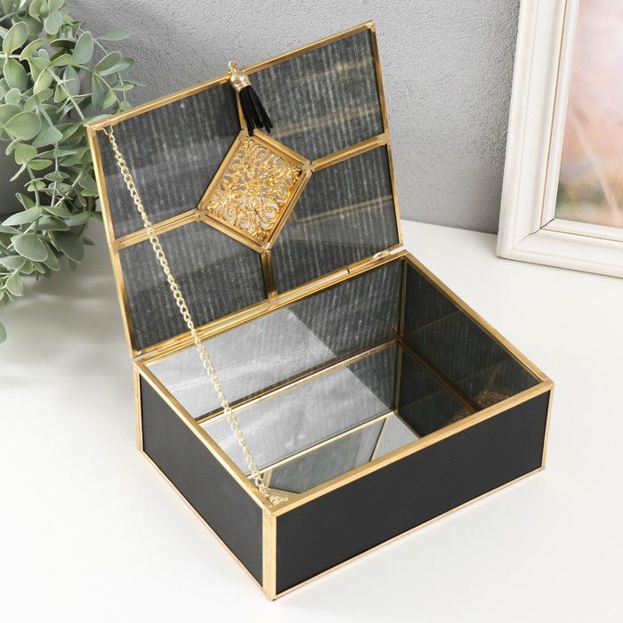 Шкатулка стекло, кожзам с металлическим каркасом "Восточный узор" чёрная 14,6х18,6х7 см