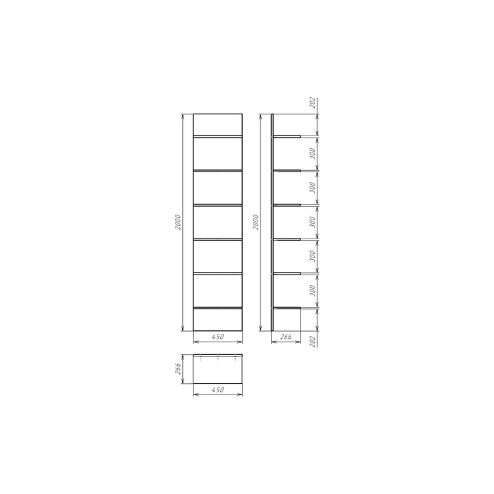 Стеллаж для увлечений 450х260х2000 Ясень Шимо Светлый