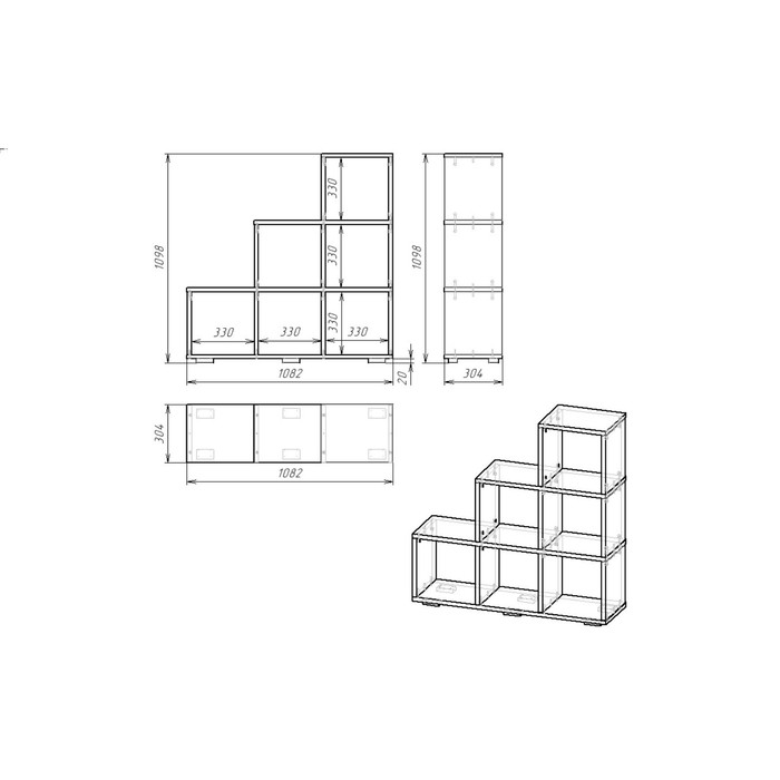 Стеллаж Стильный, 1080х300х1090, Венге темный