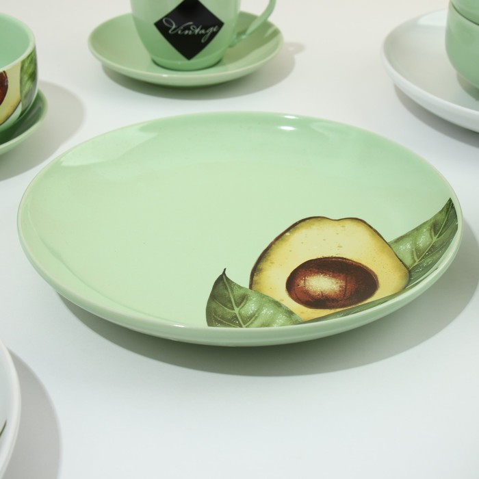 Набор посуды на 4 персоны «Авокадо», 16 предметов: 4 тарелки 23 см, 4 миски 14,5 см, 4 кружки 250 мл, 4 блюдца 15 см.