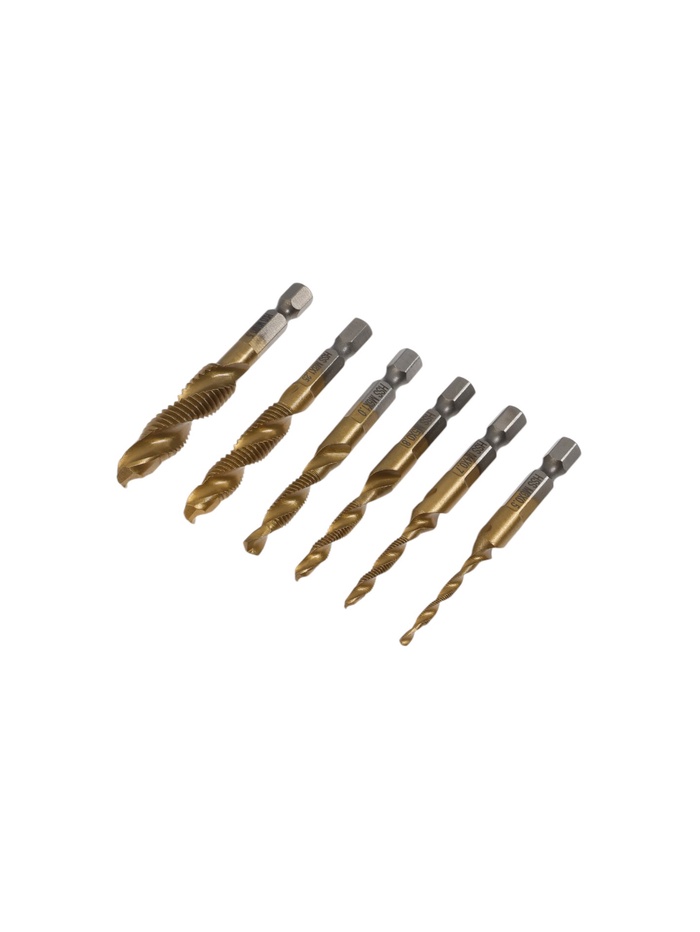 Набор сверл-метчиков ТУНДРА, TiN, шестигранный хвостовик, М3 - М10, 65 - 72 мм, 6 шт.