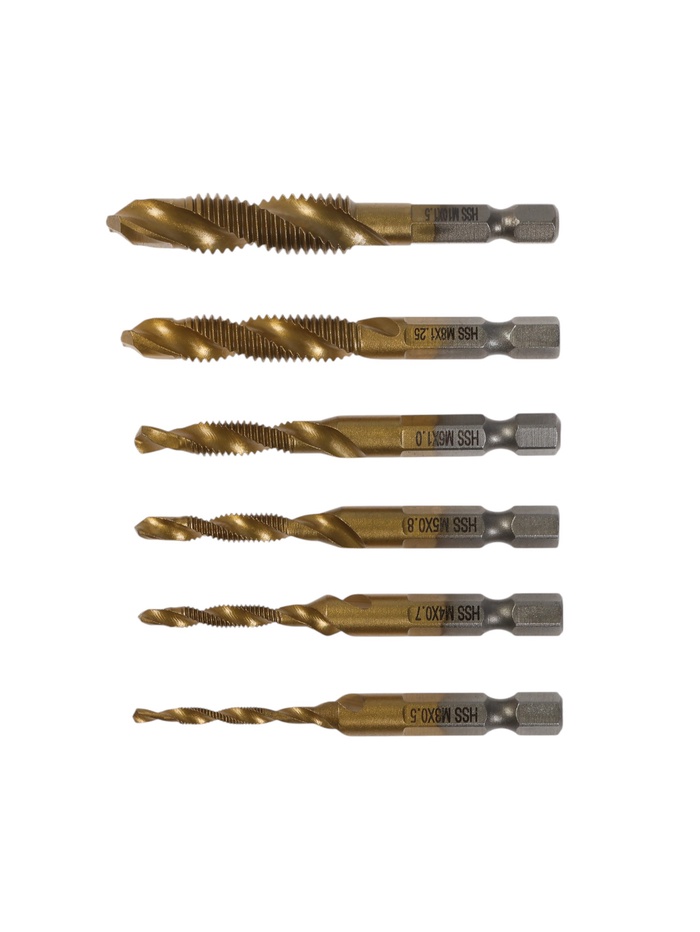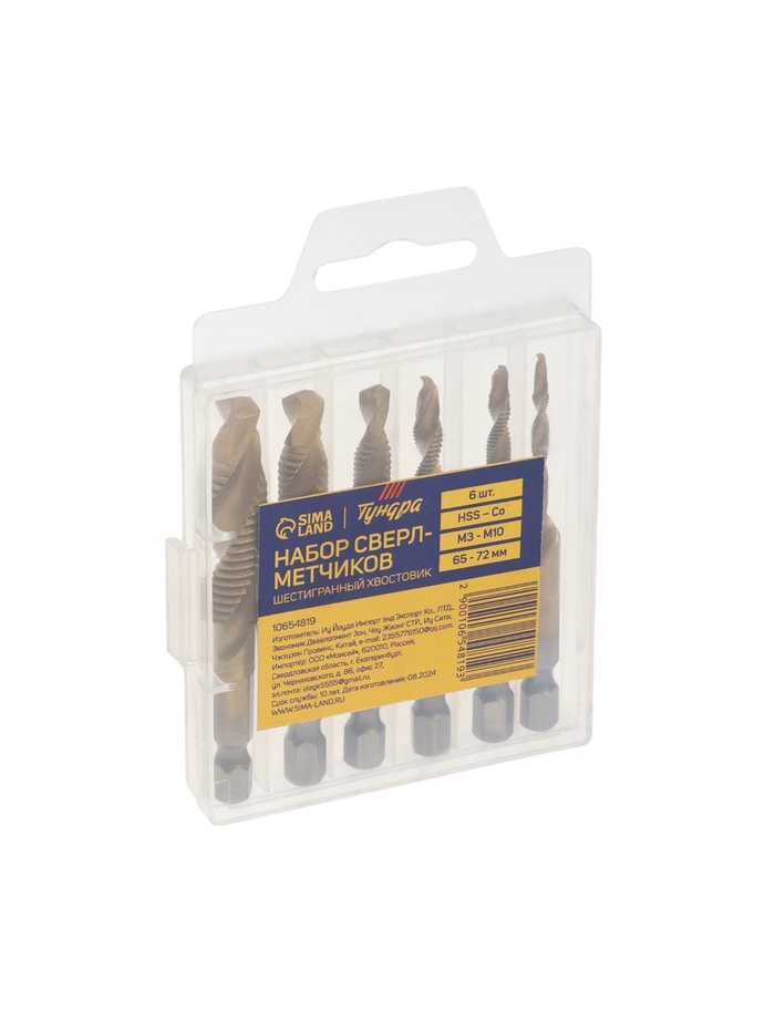 Набор сверл-метчиков ТУНДРА, TiN, шестигранный хвостовик, М3 - М10, 65 - 72 мм, 6 шт.