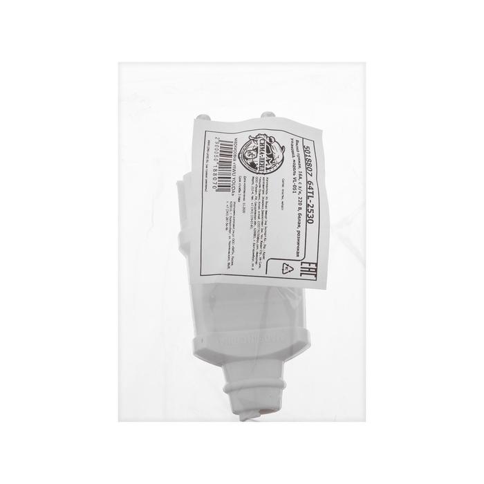 Вилка угловая, с кольцом, 16А, без з/к, 220 В, белая, розничная упаковка.