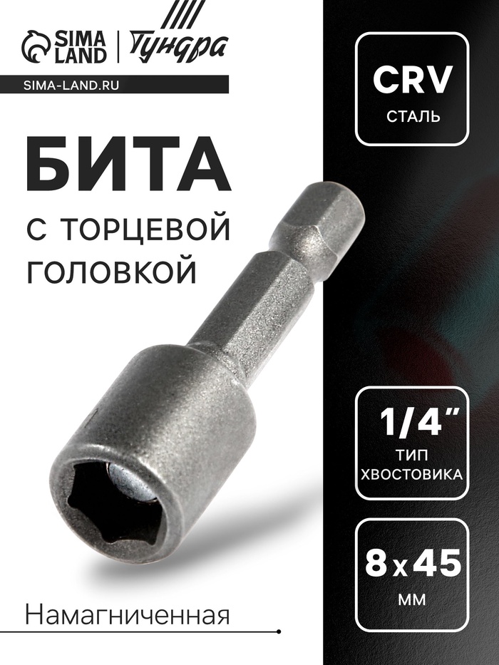 Бита с торцевой головкой ТУНДРА, сталь CrV, магнит, 13 х 65 мм