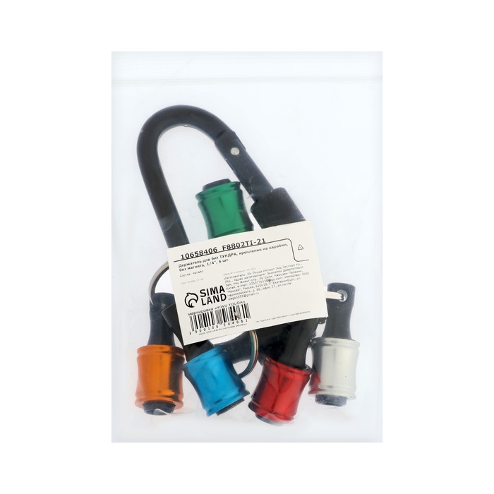 Держатель для бит ТУНДРА, крепление на карабин, без магнита, 1/4", 6 шт.