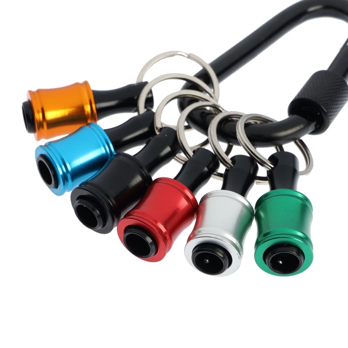 <em>Все биты под рукой в нужный момент.</em> <strong>Набор держателей для бит с карабином, 6 шт</strong> — это практичное решение для организации рабочего пространства. Компактные держатели надежно фиксируют оснастку и крепятся на пояс, сумку или рейку, обеспечивая быстрый доступ к инструменту.
