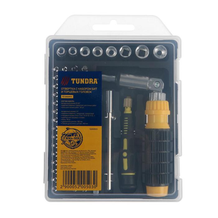 Отвертки с набором бит и торцевых головок ТУНДРА, в кейсе, 5/32", 1/4" 62 предмета