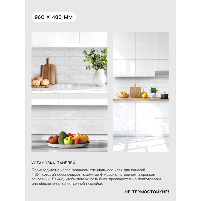 Панель ПВХ кирпич Белоснежный, 485х960