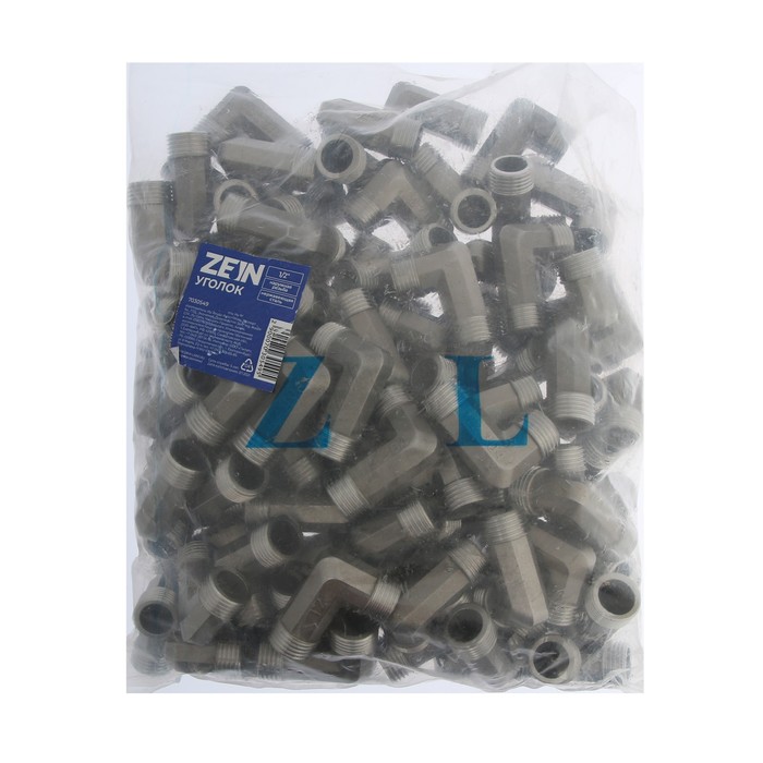 Уголок ZEIN, 1/2", наружная резьба, нержавеющая сталь, фасовка 100 шт.