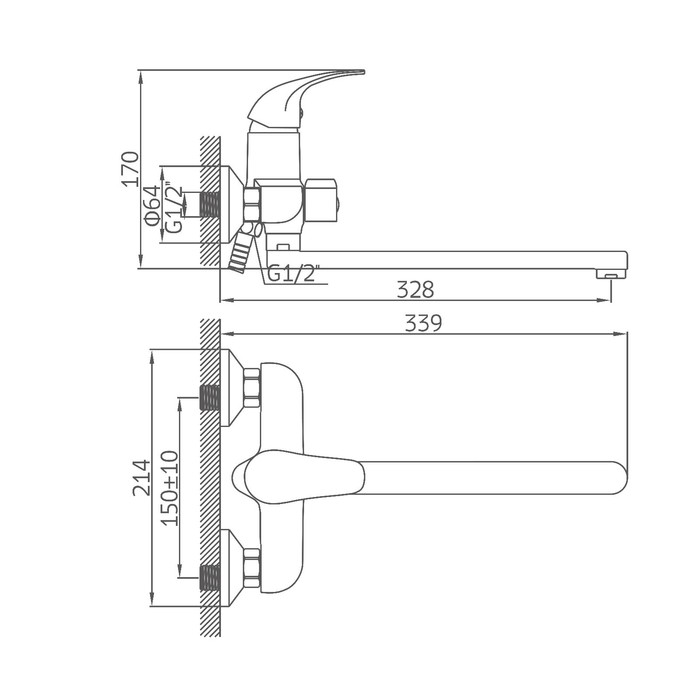 Смеситель для ванны ARCO А3004, однорычажный, короткий излив, хром