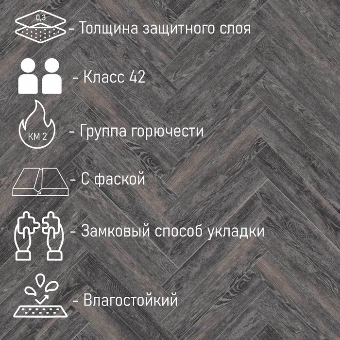 Водостойкий SPC ламинат CronaFloor Herringbone 4V Дуб Тулон H009 640*128*4.5 мм 1,31м2