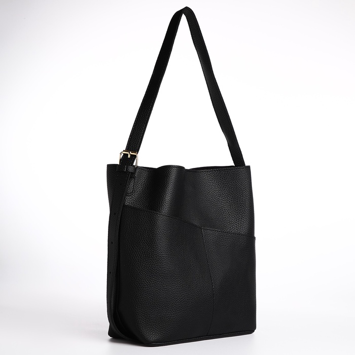 Сумка-мешок на молнии, наружный карман, длинный ремень, цвет чёрный