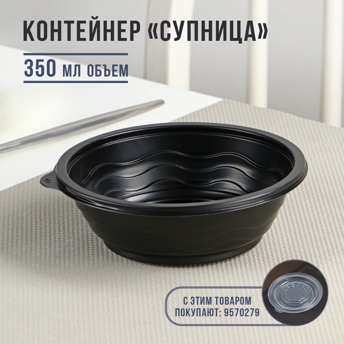 Контейнер пластиковый одноразовый «Супница», 500 мл, 11,2 см, чёрный
