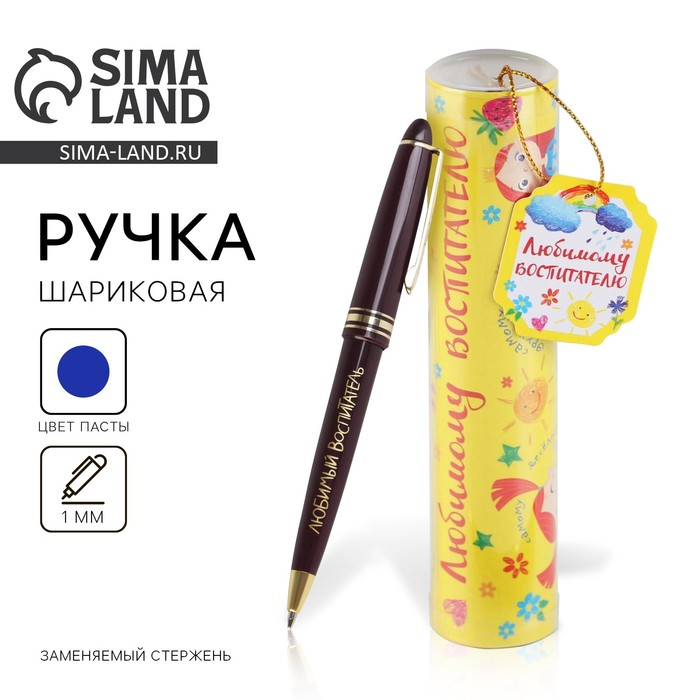 Ручка в тубусе «Любимому воспитателю», пластик, синяя паста, 1.0 мм