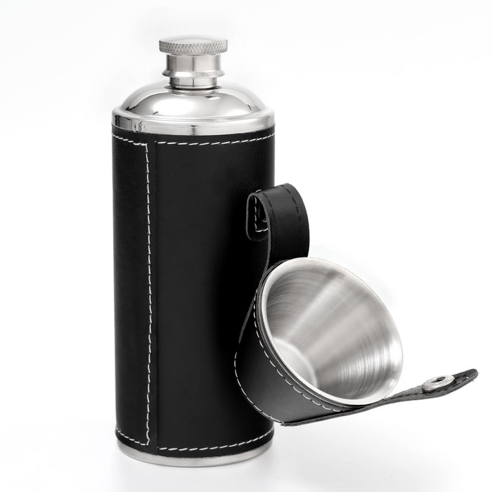 Фляжка, 330 мл "Герб России", в коричневом чехле, 8 х 4 х 18.5 см, хром