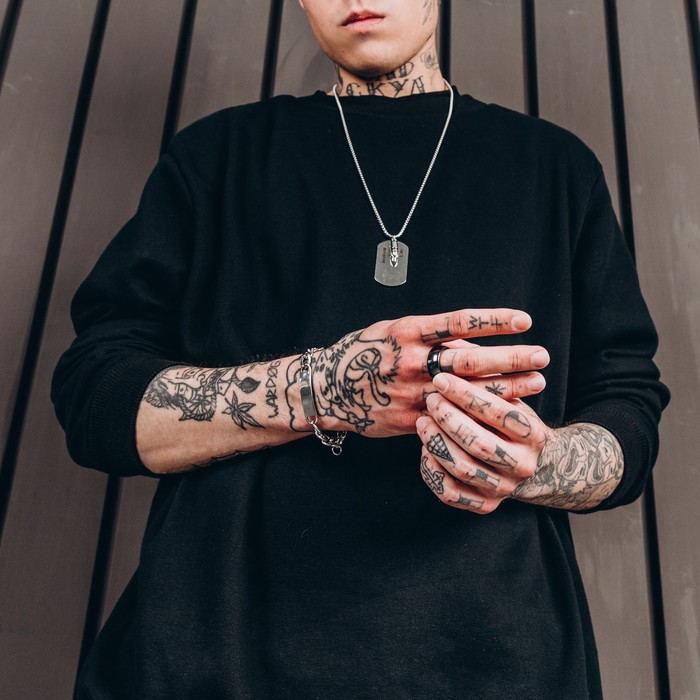 Браслет унисекс "Мощь" прямоугольник с узором, цвет чёрный с серебром, 22 см