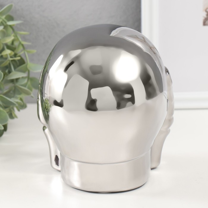 Сувенир керамика "Череп с кистями на глазах" серебро 13,5х14х15 см