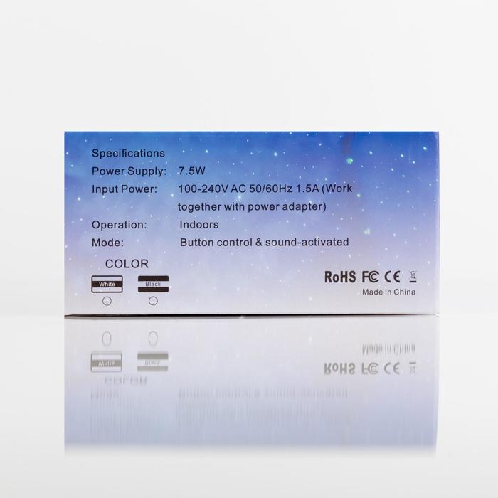 <p align="justify">Luazon Lighting - сертифицированная продукция, экологична и безопасна, полностью соответствующая требованиям Технических Регламентов Таможенного Союза. Разработчики, инженеры, дизайнеры, технологи и производственники Luazon Lighting работают над тем, чтобы продукция торговой марки приносила свет, праздничное настроение, уют и тепло в каждый город и в каждый дом нашей необъятной родины!<p align="justify">Среда применения<p align="justify">Проецирует красивейшие и наиболее узнаваемые созвездия на стены и потолок. Основной изюминкой проектора являются светодиоды, которые способны постепенно менять расцветку своего свечения. Как только проектор будет включен, то на стенах и потолке комнаты появляются тысячи ярких звезд. С этим проектором можно наслаждаться неповторимой атмосферой звездного неба, прямо у себя в комнате! Наилучший эффект от ночника достигается в условиях полного затемнения. Питание светильника возможно от USB провода.