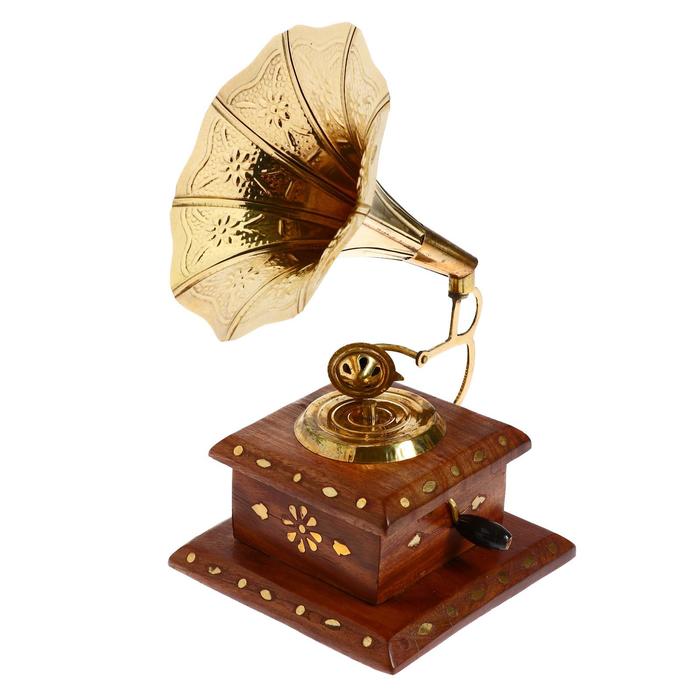 Граммофон сувенирный "Цветок пустыни" дерево, латунь 11,5х11,5х24 см