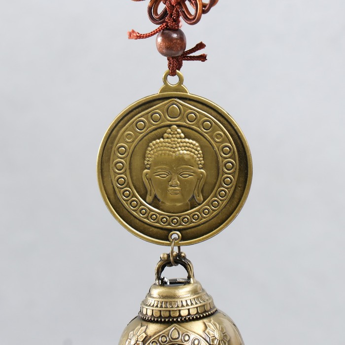 Музыка ветра металл "Монета Будды с колокольчиком" с кисточкой 5х5х30 см