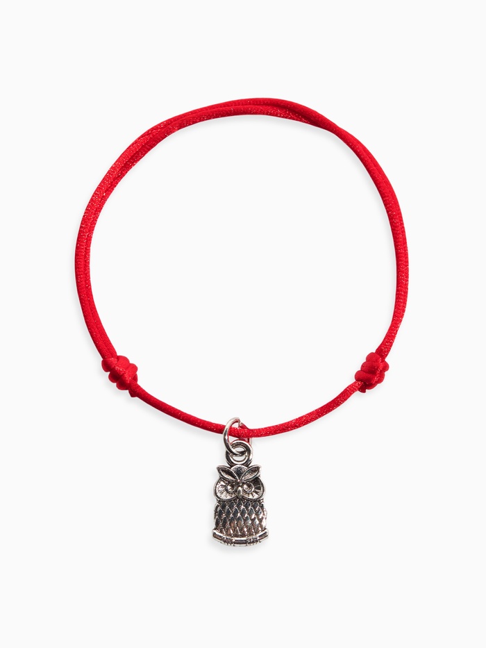Браслет-оберег «Красная нить» кошельковая сова, цвет чернёное серебро, 20 см