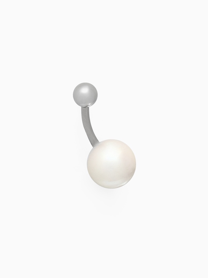 Пирсинг в пупок «Банан» жемчуг майорка, штанга L=2 см, цвет розовый в серебре
