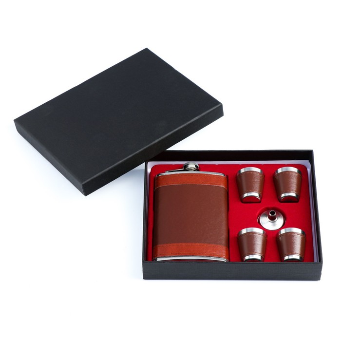 Подарочный набор "Бизнес" 6 в 1: фляжка 270 мл, воронка, 4 рюмки, коричневый, 17 х 23 см