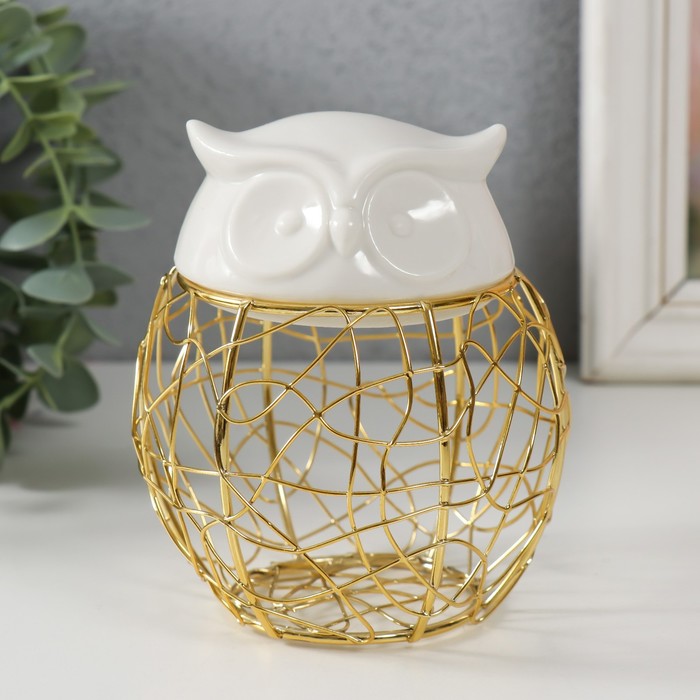Шкатулка металл, керамика "Филин. Каракули" белая 10х10х11,5 см