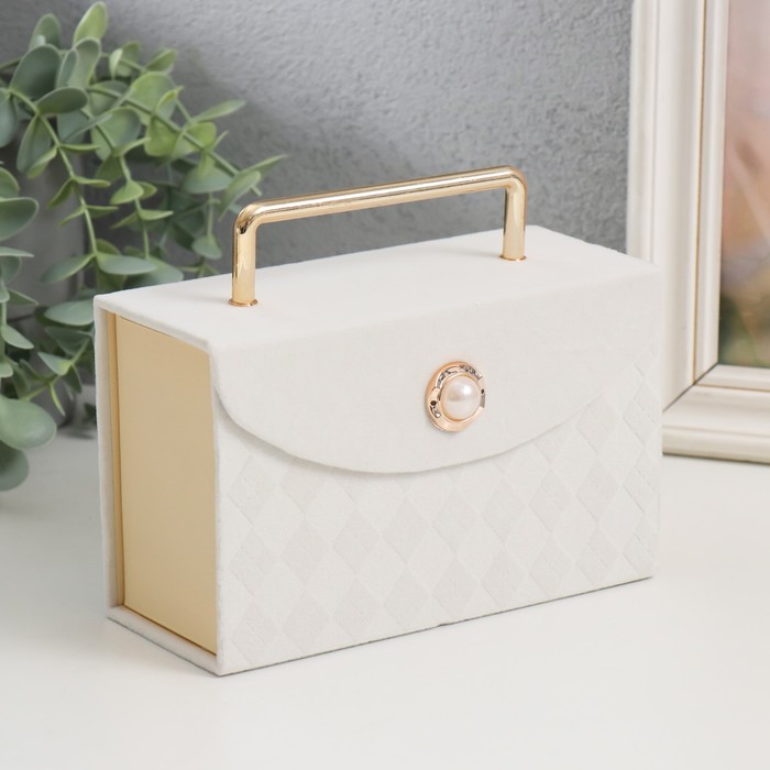 Шкатулка для украшений «Ромбы. Бордо», ручка из жемчужин, картон под бархат, 8×24×16.5 см